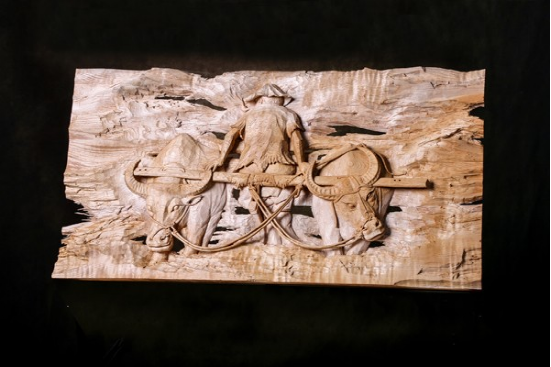 《門神》、《福滿門》這是劍川木雕在繼承傳統(tǒng)基礎(chǔ)上,對傳統(tǒng)的一種大膽嘗試性的發(fā)揚(yáng)創(chuàng)作。這些作品的特點是,既保留了嫻熟的傳統(tǒng)木雕技藝,只是通過巧妙的組合,在現(xiàn)成的古老大門上雕出“門神”或用舊門框作為木雕作品的邊框,從而產(chǎn)生一種新的意趣,這種創(chuàng)意很適合當(dāng)下都市的審美要求,也是劍川木雕未來發(fā)展中很值得提倡的新思路。木雕復(fù)制《張勝溫畫卷》