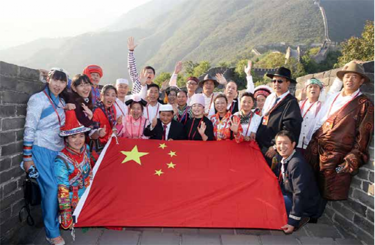 2017年全國少數(shù)民族參觀團(tuán)的各族代表參觀慕田峪長城。(民族畫報記者 娘吉加 攝影)