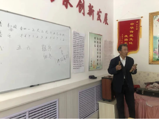南文述從小酷愛音樂,深感傳統(tǒng)音樂的魅力,為了讓千年古韻律更好地綻放光彩,潤澤當(dāng)?shù)厝罕姷木袷澜?,南文述退休后長年收集、整理古樂曲相關(guān)資料,學(xué)習(xí)、傳承古樂曲演奏,在全縣范圍內(nèi)共收集到七十余首。商都縣大力挖掘和保護(hù)文化遺產(chǎn)工作開展后,為南文述免費提供了工作室,南文述在此開辦了民族樂器培訓(xùn)班,為感興趣的群眾義務(wù)教學(xué)。目前已有學(xué)員60余人,2022年古樂曲申報成功為第七批內(nèi)蒙古自治區(qū)級非物質(zhì)文化遺產(chǎn)代表性項目,在當(dāng)?shù)厝罕娚顚拥木褡非笾邪l(fā)揮著越來越重要的作用。