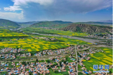 航拍門源縣油菜花海。新華網(wǎng) 宋忠勇 攝