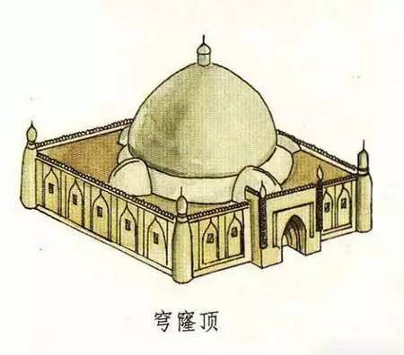 穹窿本身指天空,也形容如天空般中間高、四周下垂的樣子,同時也泛指高成拱形的建筑形式。穹窿頂就是穹窿式的屋頂,一般從外觀來看為球形或多邊形的屋頂形式。如,伊斯蘭教清真寺中的天房,室內(nèi)頂部呈半圓形,就可以叫做穹窿頂。此外,蒙古族的蒙古包等圓頂?shù)拿窬?,也可以歸為穹窿頂建筑一類。因此,穹窿頂也稱圓頂。
