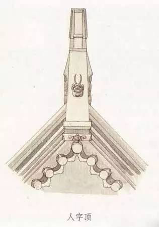 建筑的屋頂分為前后兩面坡,兩坡上端在屋脊處相交,形成建筑屋頂?shù)恼?。這種兩面坡屋頂從山墻立面看,其屋頂?shù)男蜗缶拖袷且粋€“人”字,所以把這種屋頂形式叫做人字頂。人字頂是一般住宅較常用的屋頂形式,硬山頂、懸山頂都屬于人字頂。