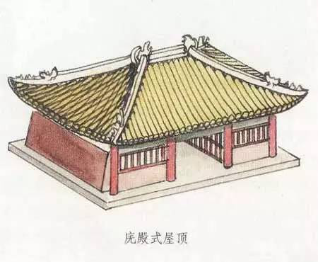 根據(jù)資料與記載,廡殿頂屋頂早在殷商時代就已出現(xiàn)。不過,現(xiàn)在對唐代中期以前的廡殿式屋頂?shù)木唧w結(jié)構(gòu)已無從得知,晚唐以后漸有實例可查。其形象是屋面平緩,正脊較短。正脊兩端為鴟尾而不是鴟首。