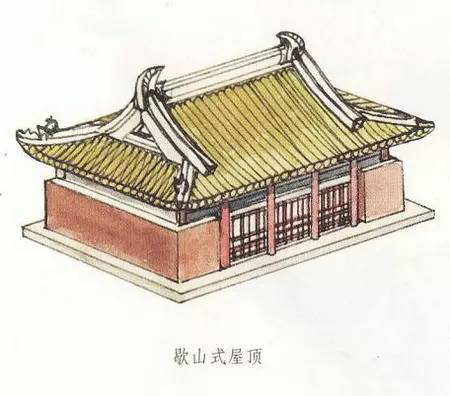 歇山是清式叫法,在清代之前它又有曹殿、漢殿、廈兩頭造等不同名稱。歇山式屋頂在具體形式上又有最基本形式的單檐歇山頂,以及變化形式的二層、三層或多層屋頂?shù)闹亻苄巾?,還有最上面的屋頂可以不設(shè)正脊而形成卷棚式的卷棚式歇山頂?shù)榷喾N形式。