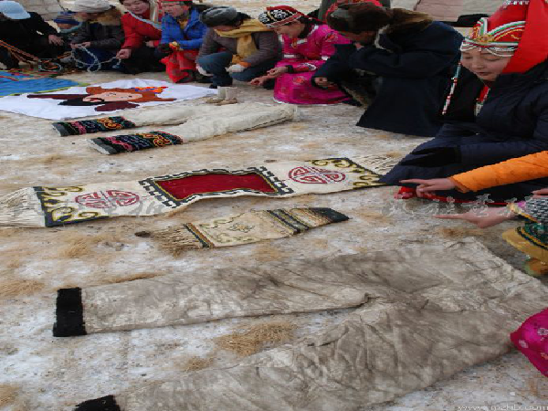 幾年前,為保護(hù)和傳承非物質(zhì)文化,新疆和靜縣巴音布魯克總場(chǎng)舉行了以蒙古族“拜年文化(過(guò)年)”為主題的非物質(zhì)文化展示會(huì)。在展示會(huì)上,牧民們展示了“拜年文化(過(guò)年)”的全過(guò)程及有關(guān)禮俗。