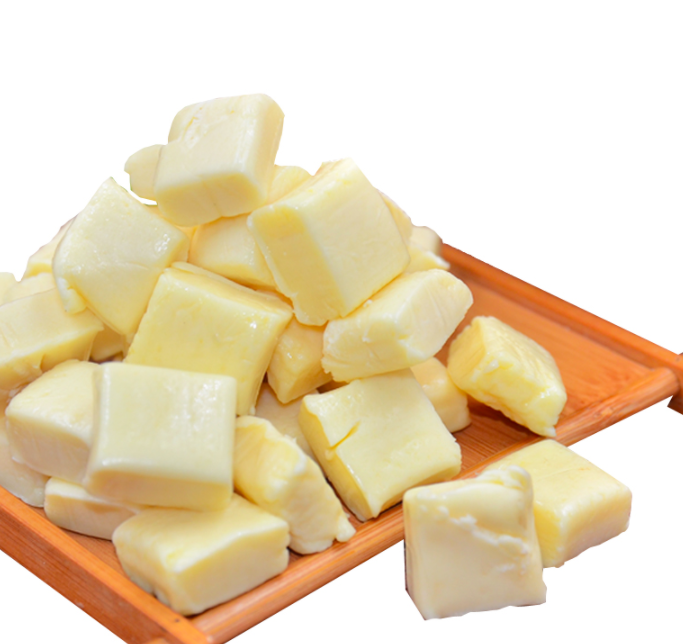 奶油是味美質(zhì)佳的食品,分為白油和黃油。白油的制法是將鮮奶倒入奶桶或鍋、盆中,令其發(fā)酵,脂肪漸漸浮在上面,用勺子撇取即成。這種食品脂肪含量極高,營養(yǎng)豐富,略有酸味,食用時有一種特殊的清香味。通過白油游客制成黃油。一般是將白油倒入鐵鍋中,用溫火慢慢熬燒,有勺頻頻反動,當(dāng)水被蒸發(fā)干凈,色澤變微黃時即成黃油。其味道純香,奶待客之上品。為了食用方便,牧民常把黃油裝在器皿或牛羊胃囊內(nèi)。