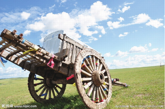 蒙古族牧民常用的一種木制大輪車。多用樺木或柳木制做。車輪高約1米,車身重約百斤,可載重300—450公斤,日行約30余公里。每車用一頭牛來拉,一人可駕馭數(shù)輛,適于在草原、沙漠、雪地等行走。亦可將數(shù)十輛勒勒車首尾相接形成近百米長的車隊(duì),十分壯觀,也形成了草原上特有的風(fēng)情?,F(xiàn)在已多被膠皮鐵輪的軸承車所替代。另外還有一種“蒙古轎車”,是一種在勒勒車基礎(chǔ)上經(jīng)過改造專門乘人的車。其與勒勒車不同之處在于車體上有用柳條子彎曲后扎成的車棚,棚子的外面用毛氈包圍,形成一個既擋陽光,又擋風(fēng)雨,防曬御寒的帳篷。