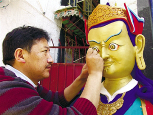 西藏自治區(qū)拉薩市城關(guān)區(qū)恰彩崗路11號是八廓街東面諸多巷院里一個(gè)極其普通的大院。在這里,一個(gè)集土建、唐卡繪畫、金屬雕刻、木雕、古藝建筑研究、西藏傳統(tǒng)手工藝技能培訓(xùn)為一體的國家文化產(chǎn)業(yè)示范基地——拉薩古藝建筑美術(shù)公司就坐落在這個(gè)古樸的大院內(nèi)。