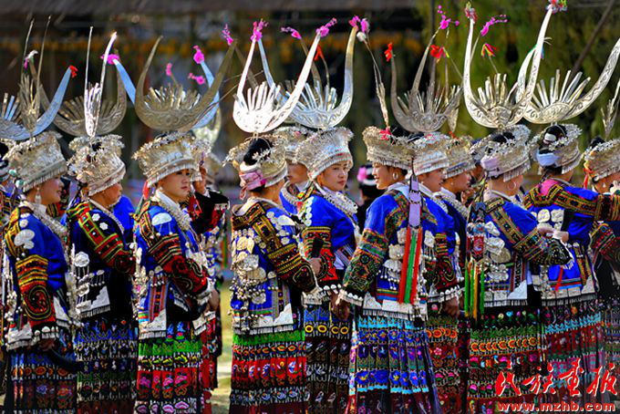 過(guò)苗年時(shí),貴州苗族未婚少女穿戴起了體現(xiàn)家庭財(cái)富的銀飾。郭建軍攝影,引自民族畫(huà)報(bào)