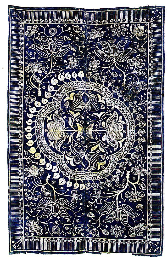 苗族蠟染歷史悠久,很多地方都流行有《蠟染歌》(古歌),敘述蠟染的起源。早在秦漢時(shí)代,苗族的先民就已經(jīng)掌握了蠟染技術(shù),據(jù)《貴州通志》記載:“用蠟繪花于布而染之,既去蠟,則花紋如繪”,這種蠟染布曾被稱為“闌干斑布”。宋代五溪地區(qū)的“點(diǎn)蠟?!?蠟染)已很盛行。明、清時(shí)代,黔中一帶苗族也多用蠟染衣料。民國年間,蠟染盛行于湘西、貴州、云南、川南的大部分苗族中,而以貴州的丹寨、安順、郎岱(今六枝)、普定、惠水等地技藝最高。大多數(shù)地區(qū)都將蠟染成品作衣飾,湘西地區(qū)則用作床單、枕巾等。