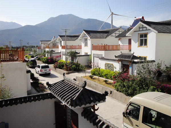 ⑷土掌房是滇南彝區(qū)傳統(tǒng)民居。先用粘土筑成墻,墻高達二至三米時,用木椽封頂,頂上再鋪粘土,經(jīng)灑水抿捶,形成平臺屋頂,可作曬場或涼臺,多為平房,也有的設(shè)二至三層樓。其特點是冬暖夏涼。此種房屋多為依山而建。