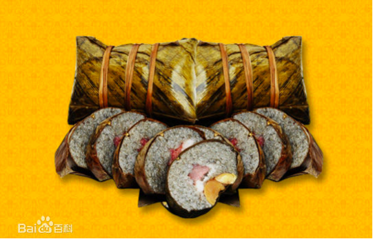 一種是云南文山壯族苗族自治州的馬腳桿棕。這種粽粑是用30厘米長、10至15厘米寬的大粽葉包成。其形狀頭大,有一長尾,很像一根帶蹄的馬腳,故稱馬腳桿粽。包粽時,將糯米淘洗后浸泡半個小時以上,把頭年的干粽葉燒成草灰,與濾干的糯米混合均勻?;鹜惹薪z、拌合棗子、化油,再與拌了粽葉灰的糯米均勻拌和,外包鮮粽葉,入鍋水煮而成。其味分淡、咸兩種。咸味添加食鹽,淡味則不加鹽。也有加糖而成甜味的。馬腳桿粽色灰黃、味香,口感滑膩??蔁崾?,也可冷食,保存期較長,是節(jié)日必備之品,也是青年男女趕集、趕歌圩,趕花街互相贈送的常備禮品。