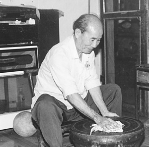 韋萬義在精心保護銅鼓