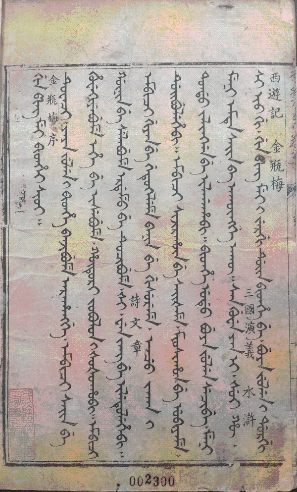 滿文本《金瓶梅》國內(nèi)藏有國家圖書館刊本、中央民族大學圖書館刊本、趙則誠先生藏刊本(殘)、中國社科院民族研究所刊本(殘)、大連圖書館抄本、吉林大學圖書館精抄本、中國民族圖書館刻本等。此外北平闞君云敝處所藏有蒙文《金瓶梅》。
