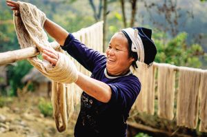 白褲瑤婦女紡紗織布做衣,新買的棉紗要經(jīng)過(guò)蒸煮、漂洗、涼曬才可織布,而年輕一代的白褲瑤婦女大多直接到市場(chǎng)上買白布。2007年10月拍攝。
