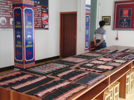 挑花、刺繡、織錦、印染工藝美術,是瑤族傳統(tǒng)的手工藝術。據(jù)史籍記載,早在漢代,瑤族婦女就能制作五彩繽紛的“斑布”衣服。挑花、織錦就是“斑布”中的一種。歷史悠久,工藝精巧,頗負盛名。進入明、清時期,“瑤斑布”的挑刺藝術又有了提高,“用五色絨雜銹花卉”,善以簡練生動手法,表現(xiàn)出復雜的自然形象。色彩的處理,能應新巧配,往往取深青色布,用紅、黃、綠、白的絨絨挑繡,制成線條剛?cè)嵯嘁?、色彩協(xié)調(diào)、千變?nèi)f化的圖案。圖案有對角相稱的斜十字形、正十字形、卐形和人字形,也有取材于生活中的花、鳥、蟲、魚、野獸等形狀。構(gòu)思精巧,形象逼真,體現(xiàn)了瑤族婦女的聰敏才智。改革開放以來,為了更好得保護民族傳統(tǒng)文化和進行民族風情旅游開發(fā),有些地方政府撥出專門資金,讓年輕人向老人學習包括傳統(tǒng)的織染刺繡在內(nèi)的傳統(tǒng)手工技術。