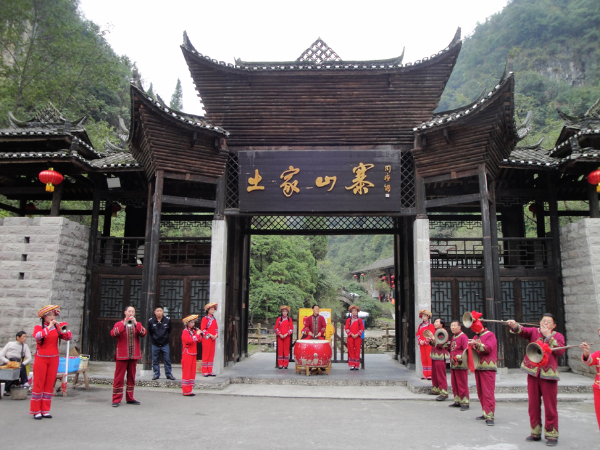 圖為湖北宜昌點(diǎn)軍區(qū)車溪土家山寨迎賓場(chǎng)面 老鐵供圖