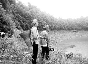 記得小時候有一回上學(xué),我在“之”字形的山道上遇到一撥“背腳佬”。只見他們那布滿蚯蚓般青筋的腿肚顫抖著,手中鑲著鐵釘?shù)拇蜩圃谑迓飞隙‘?dāng)?shù)貫R出火星,草鞋里的雙腳踏著堅實的土地。每當(dāng)轉(zhuǎn)過一個彎,他們就一邊把打杵支在背簍下面,一邊發(fā)出“哎——喲嗬——”的吼聲。抹下一串汗珠,疲勞仿佛也被扔下山,引起陣陣回響。不知是誰還吼起了粗獷的山歌:“郎在高山打傘來,姐在房中做花鞋,雙手接過郎的傘,用手把姐抱在懷……”
