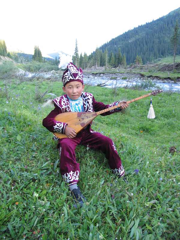 哈薩克族的音樂極具民族特色,樂器種類和樂曲形式也非常豐富?!岸焕睘閺椬鄻菲?,是哈薩克族民間最流行的傳統(tǒng)樂器,分為高、中、低等十幾種。冬不拉易學易帶,深受廣大哈薩克族人民的喜愛。拉奏樂器以“柯布孜”為代表,演奏起來聲音類似小提琴,但形狀要比小提琴復雜,其上端向里彎,琴腹如勺,腹面張開,背面蒙有羊皮,琴弦是用馬尾或牛筋制做而成的。吹奏樂器主要有“斯伯孜俄”,民間藝人喜好并擅長使用此物,被哈薩克族譽為“心笛”。這種樂器外形酷似豎簫,音色悠揚而柔和。哈薩克族的打擊樂器也有很多,極有特色的是“阿迪托亞克”。這種打擊樂器由兩個組成一對,演奏時互相擊打,其外形似馬蹄,加之所奏出的效果也像馬蹄踩在地面上的聲音,哈薩克族稱之為“馬蹄音”。