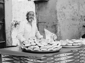 維吾爾老人很會打馕,這又是小城的另一項(xiàng)營生。原先住在農(nóng)村,大家都是用自己的馕坑來打馕,打一次夠一個(gè)星期食用。進(jìn)了城,馕坑沒了,主婦們用烤箱烤了幾次,總覺得少了那么一點(diǎn)味道。于是,小城里出現(xiàn)了幾個(gè)打馕人,在馕坑里打好馕,每日售賣。