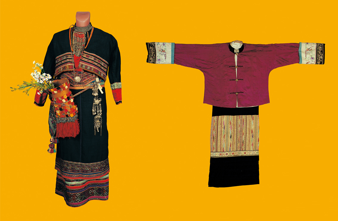 元江傣族民國時(shí)期銀泡土布女服與德宏傣族民國時(shí)期花綢織錦男服