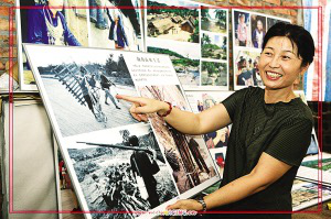 胡亞玲在她的個(gè)人攝影展上向觀眾講述照片背后的故事