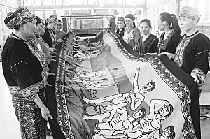 歷時(shí)一年時(shí)間織造,長(zhǎng)186.7米黎族民俗風(fēng)情長(zhǎng)卷織錦壁掛《錦繡黎家》,日前喜獲上海大世界基尼斯世界紀(jì)錄證書(shū),成為世界織錦項(xiàng)目之最。這幅黎錦長(zhǎng)卷由海南省民族研究所織錦工藝研究人員設(shè)計(jì),五指山鑫達(dá)民族織錦旅游開(kāi)發(fā)中心于2012年4月初,在三亞檳榔河國(guó)際鄉(xiāng)村文化旅游區(qū)開(kāi)始織造工作。
