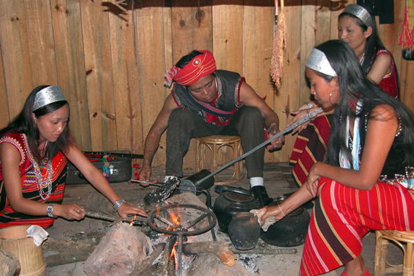 嚼檳榔是佤族男女老少普遍的嗜好,平時勞動休息或閑談,口中都嚼一塊檳榔。所嚼檳榔都是用麻櫟葉和石灰煮成的代用品,據(jù)稱嚼檳榔有健齒作用。