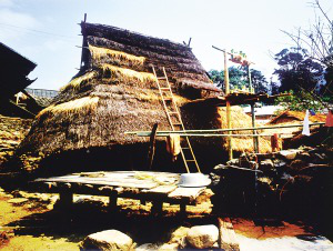 云南省西盟佤族自治縣里所鄉(xiāng)阿佤來村單建的火塘和糧柜間