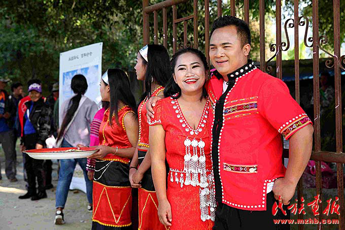 一對(duì)新人在雙方父母見(jiàn)證下,以佤族傳統(tǒng)婚禮方式喜結(jié)良緣
