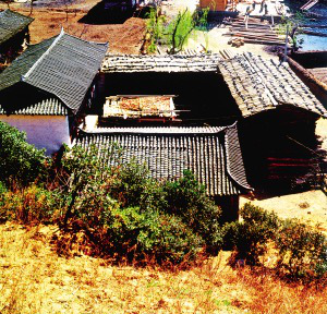 束河、沙河古村鎮(zhèn)到處都是納西族的田園式庭院。大門的裝飾與圍墻和屋脊的裝飾相呼應(yīng),庭院里種了許多植物,高的果樹,矮的花草,就像一個(gè)小花園,和田間彌漫著的野薔薇都散發(fā)著令人陶醉的幽香。