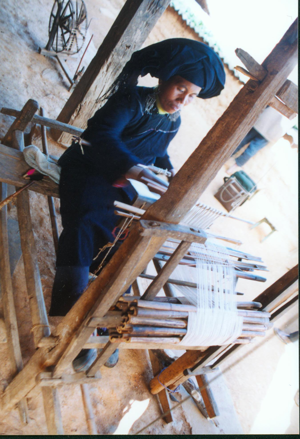 ?。?)紡織。布朗族婦女善于紡織,多在閑暇時(shí)間進(jìn)行。紡織原料有棉花、苧麻和葛線麻等數(shù)種,以紡織棉布為主。這些布用來縫制上衣、筒裙、背帶、布袋、裹腳布等。紡織品種有斜紋布、平布和彩錦。布的質(zhì)地厚實(shí)耐穿,深受本族人喜愛。有的地區(qū),人們多半使用水平織機(jī),紡織技術(shù)更進(jìn)了一步。近十年來,由于價(jià)廉物美、品種齊全的化纖紡織品大量銷售,傳統(tǒng)的紡織技術(shù)受到了沖擊,一些布朗族婦女已經(jīng)不紡紗織布。