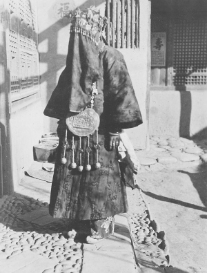 照片中的人物,是青海循化街子工附近一位即將出嫁的新娘。照片拍攝時(shí)間是1932年2月,地點(diǎn)是霍頓居住的院落。