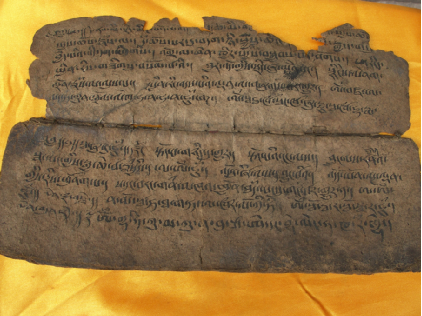 一般認(rèn)為普米族沒(méi)有本民族文字,但歷史上普米族曾使用過(guò)簡(jiǎn)單的圖畫(huà)文字,這是一種萌芽的原始刻畫(huà)文字,見(jiàn)于房屋壁畫(huà)、神龕、法器、房梁等地?,F(xiàn)學(xué)界說(shuō)的“韓規(guī)文”是以藏文字母為基礎(chǔ),用以記錄普米語(yǔ)的文字符號(hào)。韓規(guī)文主要用于抄寫宗教祭祀經(jīng)文,認(rèn)知度不高,一般只有普米族的巫師“韓規(guī)”才能掌握使用(圖為韓規(guī)文經(jīng)書(shū)殘片,蒙哥提圖)。普米族現(xiàn)今有一套拼音文字,該套拼音文字以寧蒗彝族自治縣新?tīng)I(yíng)盤鄉(xiāng)牛窩子村的普米語(yǔ)為基礎(chǔ)音,在寧蒗普米傳統(tǒng)文化保護(hù)協(xié)會(huì)及香港大學(xué)丁思志教授的努力下,經(jīng)修訂的拼音文字最終面世,并且有了普米語(yǔ)教材。普米族拼音文字設(shè)計(jì)的構(gòu)想最早是在1995年由香港大學(xué)大學(xué)丁思志教授提出,同年,普米語(yǔ)聲母表首稿完成。該方案歷經(jīng)修改,最終的方案共收錄42個(gè)聲母,能夠滿足各地普米方言的使用需求。近年,丁思志教授又創(chuàng)制了一套有別于拼音文字的新創(chuàng)文字。新創(chuàng)文字是一種表意文字,該套文字以牛窩子普米語(yǔ)為基礎(chǔ)音,以漢字表意,輔之以自創(chuàng)的虛詞而成,從一定程度上超越了普米語(yǔ)言空間限制,解決了不同普米方言區(qū)因?yàn)榭谝舨町惗纬傻慕涣髡系K。
