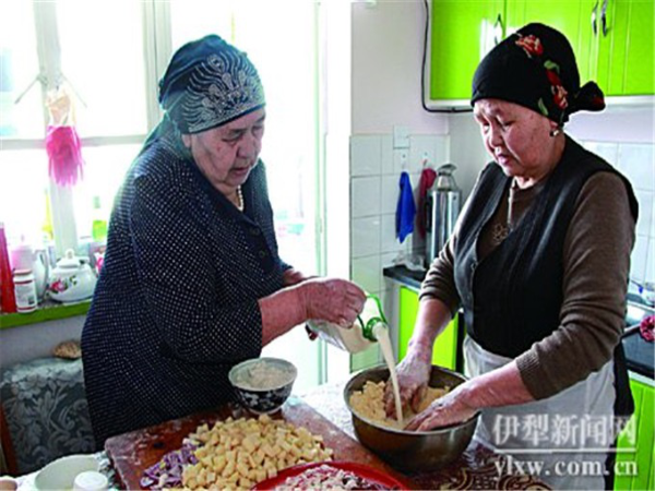 如今,她和姐姐經(jīng)?;ハ啻T,一起做拜列西。做好后,一家人圍坐在一起,喝茶,吃拜列西,聊天?!耙涣钠饋?,就沒個完。”買斯胡旦笑說。采訪當日,她即把姐姐邀來,跟她一起做塔塔爾族的這種傳統(tǒng)食物。