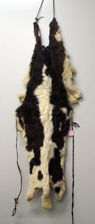 門(mén)隅南部地區(qū)的門(mén)巴族婦女,不分老少,袍服外披一張較為完整的小牛犢皮或巖羊皮,毛朝內(nèi)、皮板朝外,牛皮頸部朝上,尾部朝下,略做加工、而且四肢皮伸向兩側(cè)。以此為美飾,吉慶節(jié)日或訪親會(huì)友,都要披一張新牛皮做盛裝。傳說(shuō),唐代文成公主進(jìn)藏時(shí)背上披著皮子以避邪,后來(lái)此物賜給門(mén)隅婦女,后此物就成為門(mén)巴族婦女歷來(lái)沿用的裝束。