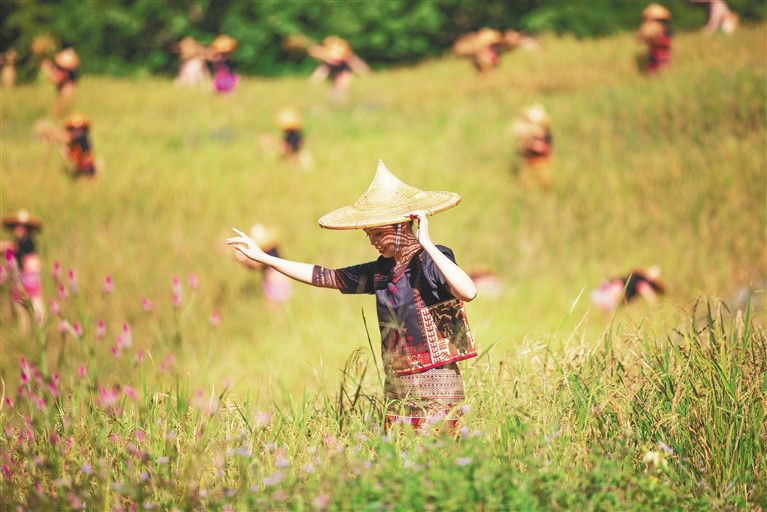 11月21日,在白沙黎族自治縣青松鄉(xiāng)擁處村、青松村等村莊的山坡上、山谷里,放眼望去,在群山疊翠間,漫山遍野都是金黃色的山蘭旱稻,這般豐收的場(chǎng)景尤為賞心悅目。當(dāng)天,2021年白沙“啦奧門(mén)”山蘭文化節(jié)在青松鄉(xiāng)擁處村啟幕,活動(dòng)旨在讓更多的人知曉海南黎族山蘭旱稻的農(nóng)耕文化,進(jìn)一步提升“啦奧門(mén)”山蘭文化節(jié)民族品牌活動(dòng)的影響力,助力鄉(xiāng)村振興“加速跑”。
