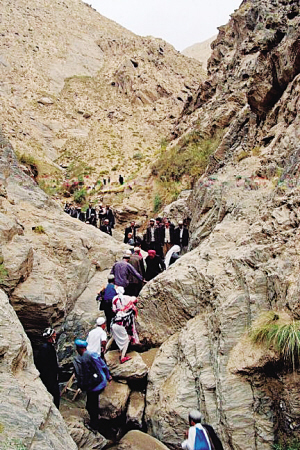 2004年5月,洛浦縣阿其克山麻扎,信徒們踏上艱難的朝拜路