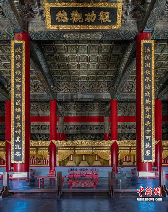 歷代帝王廟景德崇圣殿內(nèi)景匾額與楹聯(lián)。(中新社發(fā) 許偉 供圖)