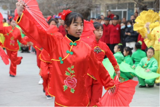 在[資2]讓人流連忘返的民俗演出中,最引人矚目的便是來(lái)自討思浩小學(xué)的學(xué)生們帶來(lái)的自“天倉(cāng)節(jié)”祈福儀式演變而成的“天倉(cāng)舞”表演,孩子們有板有眼的舞蹈動(dòng)作完全不遜色于專(zhuān)業(yè)的演出隊(duì)伍,不僅將討思浩特有的傳統(tǒng)民俗淋漓盡致的展現(xiàn)出來(lái),更是對(duì)西北農(nóng)耕文化的有力傳承。據(jù)介紹,2018年12月開(kāi)始,村委會(huì)聯(lián)合討思浩小學(xué)于每周五下午開(kāi)設(shè)了民俗文化特色課,天倉(cāng)舞傳習(xí)、民俗歷史講座等內(nèi)容的設(shè)置,讓孩子們對(duì)家鄉(xiāng)的歷史文化更加了解,增添了對(duì)家鄉(xiāng)的認(rèn)同感,也讓保留了幾百年的民俗文化得到了傳承。