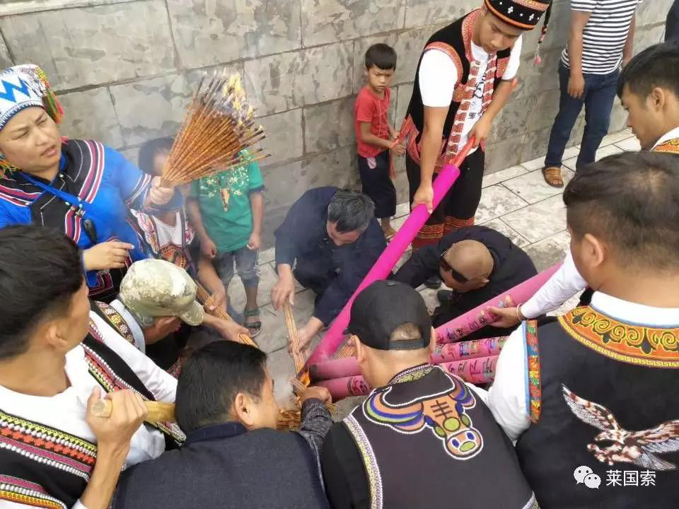 誦完祭文,長(zhǎng)號(hào)、嗩吶聲響,各地彝人依次向阿普篤慕及六子行三躹躬,手持焚香依地州順序祭拜祖先阿普篤慕。有些遠(yuǎn)方的老人還小心撿起畢摩撒地的五谷,或到畢摩旁的斗里抓把五谷,小心放入隨身繡花腰包,帶回家鄉(xiāng),傳承精神。江城彝人普寒薇按彝家傳統(tǒng),拿岀江城自產(chǎn)的糖果,向四周拋灑,甜蜜灑人間。勤勞勇敢,勤儉持家,彝家兒女,代代相傳。