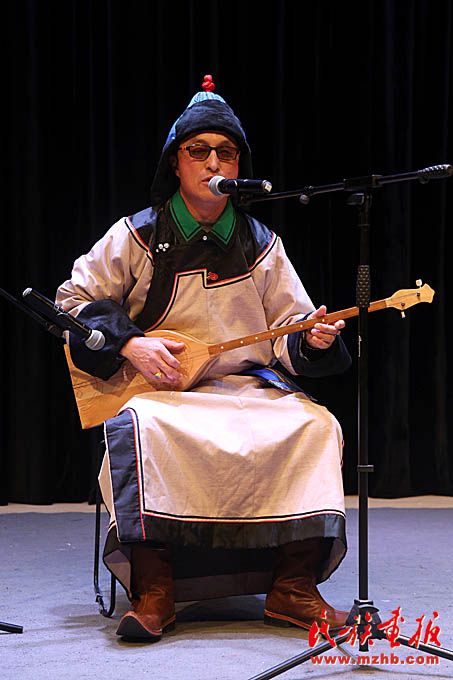 阿勒泰地區(qū)烏梁海突兀里傳承人巴特吐爾表演《烏云孟根哈達(dá)森》。