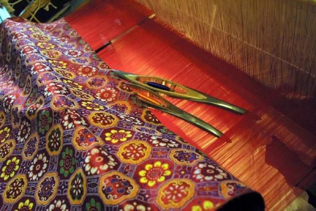 蜀錦其價如金主要體現(xiàn)在制作工藝上。要完成一件作品,從程序上說,主要需經(jīng)歷初稿設計、定稿、點意匠、挑花結(jié)本、裝機、織造等幾個重要過程。每一道程序又涉及到很多獨特的技藝。用蜀錦大花樓木質(zhì)機織造蜀錦,拽花工和織手須掌握多種技能。這些古代織造蜀錦的技能令人嘆為觀止。