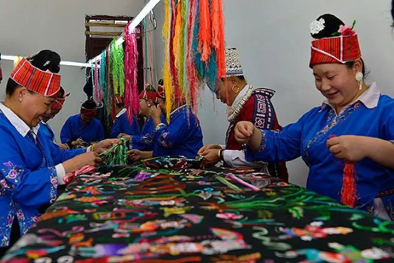 《錦繡臺(tái)江》長(zhǎng)22米、寬0.9米,由臺(tái)江縣100余名繡娘用了一個(gè)多月時(shí)間共同繡制完成,是目前臺(tái)江苗族刺繡中最長(zhǎng)、最精美的作品