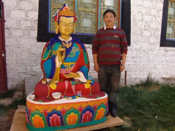 在泥塑技藝中除了面具外,佛像也是不計(jì)其數(shù),從形態(tài)上可分為喜相、怒相兩大類。“手工藝人在制作泥塑佛像時(shí)一定要按照標(biāo)準(zhǔn)進(jìn)行,就像畫唐卡一樣,這些藝人要把《造像度量經(jīng)》牢記在心里,在制作時(shí)要不停默背佛像的尺寸大小,所以你看這些已經(jīng)制作好的泥塑佛像在輪廓上都是固定的,只是在一些裝飾品上有所不同?!逼詹即稳室贿呏钢砼缘哪嗨芊鹣褚贿呏v解道。