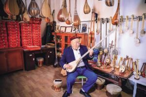 艾依提·依明一家四代人都是制作民族樂器的工匠。自15歲始,他就跟著祖父和父親學(xué)做樂器,經(jīng)過半個多世紀的錘煉,如今他精通大部分維吾爾族樂器的制作技藝?!耙话焉虾玫亩妓枏倪x材到制作完成大約需要兩年時間,這也是一個制作工藝不斷提升的過程?!卑捞?middot;依明不僅可以制作近20種民族樂器,而且還能彈唱,他說,要想制作出好的樂器就一定要會彈奏樂器,不然沒有辦法調(diào)音,制作的樂器也不精細。