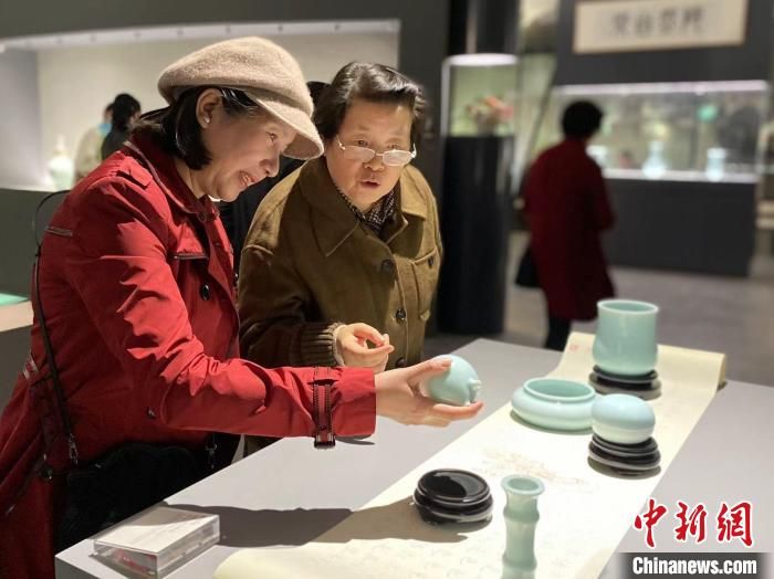 參觀者觀賞青瓷作品?!″X晨菲 攝
