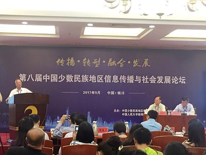 2017年9月16日,由中國(guó)少數(shù)民族地區(qū)信息傳播與社會(huì)發(fā)展論壇組委會(huì)、中國(guó)人民大學(xué)新聞傳播學(xué)院、寧夏大學(xué)新聞傳播學(xué)院聯(lián)合主辦,銀川市傳媒集團(tuán)協(xié)辦的第八屆少數(shù)民族地區(qū)信息傳播與社會(huì)發(fā)展論壇在寧夏銀川舉行。來自全國(guó)42所高校的130多名專家、學(xué)者齊聚銀川,圍繞少數(shù)民族地區(qū)信息傳播與社會(huì)發(fā)展問題進(jìn)行交流研討。