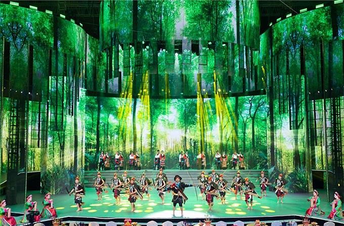 在舞美上,晚會(huì)傾力打造中華文化概念,突出鑄牢中華民族共同體意識(shí),建構(gòu)熱烈祥和的觀演環(huán)境、身臨其境的現(xiàn)場(chǎng)體驗(yàn)、自然流暢的互動(dòng)場(chǎng)景,以更炫麗、更時(shí)尚、更具生命力的節(jié)目內(nèi)容和形式,為觀眾提供技術(shù)與藝術(shù)完美結(jié)合的視聽盛宴。主創(chuàng)人員別具匠心地把舞臺(tái)設(shè)計(jì)成一個(gè)具有民族特色的大客廳,寓意各族兄弟姐妹溫暖團(tuán)聚,營造既有民族特色又有時(shí)代氣息的視覺空間。