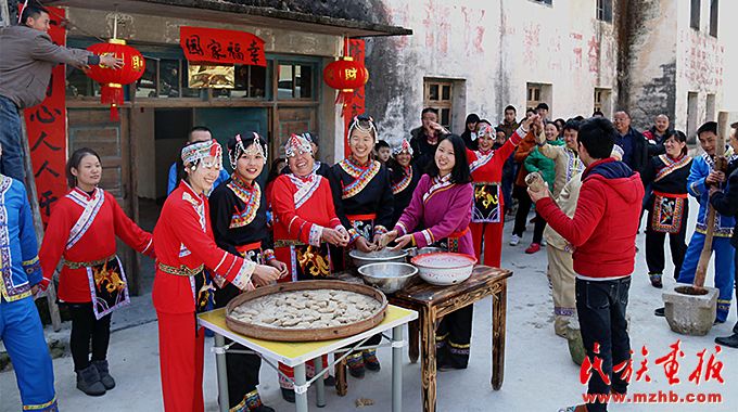 樂安縣金竹畬族鄉(xiāng)的畬族群眾準(zhǔn)備了特色小吃,歡歡喜喜迎新年。